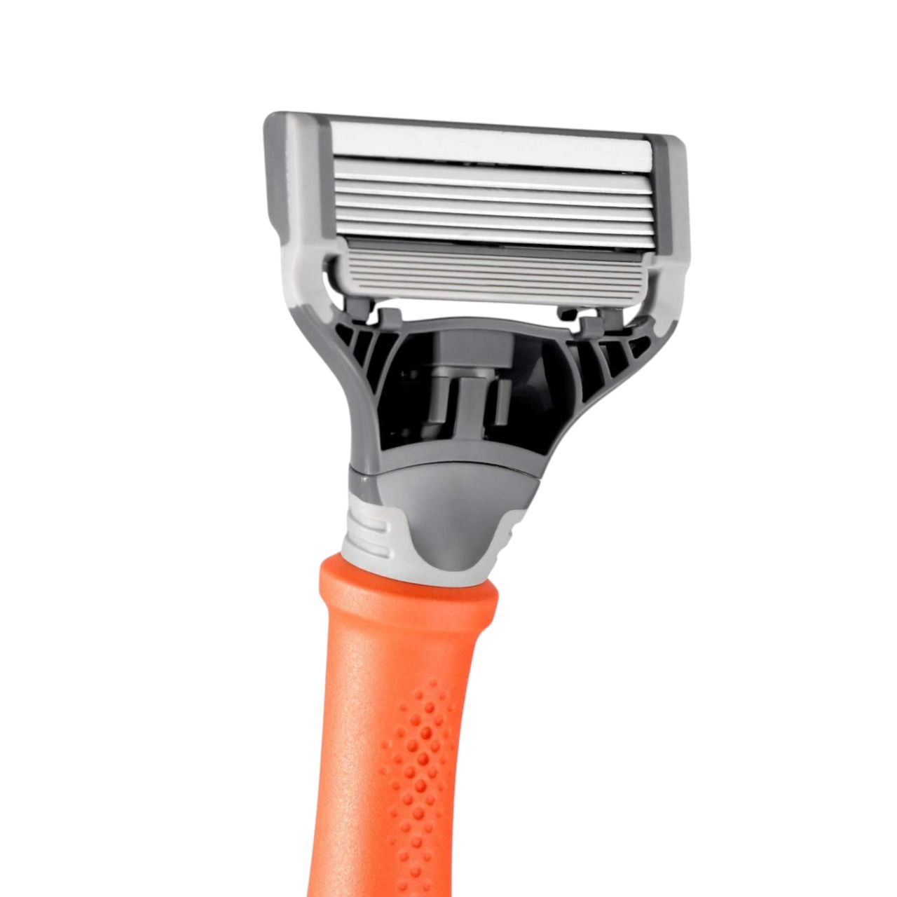 Ця преміальна бритва для гоління з 5 лезами поєднує в собі леза, виготовлені в Німеччині зі шведської сталі, з ергономічною помаранчевою ручкою, що забезпечує гладке гоління без подразнень, стильне, довговічне та доступне за ціною.
